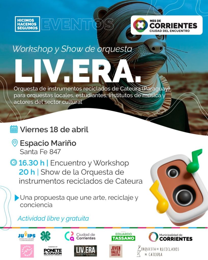 Comenzará el viernes en el Espacio Cultural Mariño con un workshop, a partir de las 16, y posteriormente habrá un espectáculo musical con la presentación de la Orquesta de Instrumentos Reciclados de Cateura de Paraguay.
